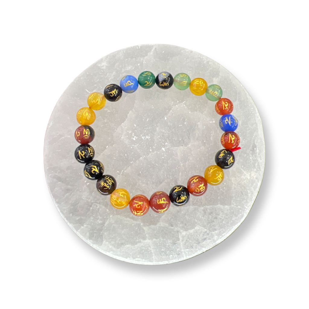 - Om Mani Padme represents a sacred sound and the spirit of peaceful, fulfilling meditation. This Energy Bracelet is well made with top quality Natural Stone and excellent craft, so it may have stone flavor.