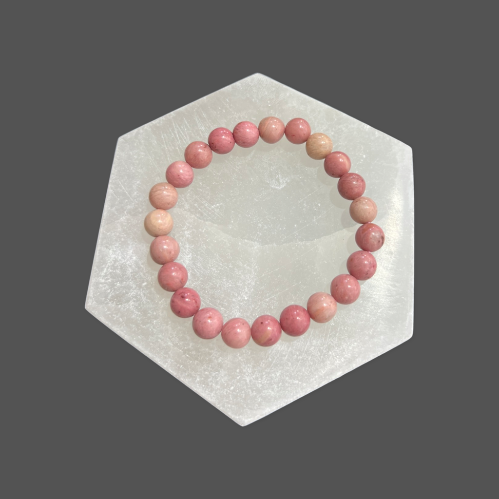 Rhodochrosite is a stone that integrates physical and spiritual energies, stimulating love and passion while energising the soul.  Rhodochrosite opens the heart, lifting depression and encouraging a positive and cheerful outlook.  It improves self worth and soothes emotional stress.  Rhodochrosite encourages a positive attitude, creativity and innovation, and enhances dream states.