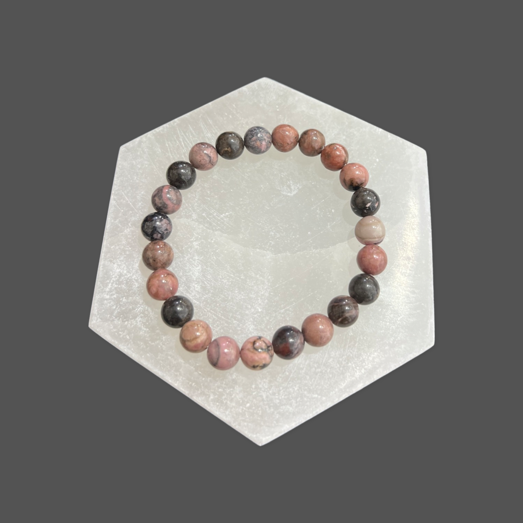 Rhodonite is a stone of compassion, an emotional balancer that clears away emotional wounds and scars from the past, and that nurtures love. It stimulates, clears and activates the heart. Rhodonite grounds energy, balances yin-yang, and aids in achieving one's highest potential. It heals emotional shock and panic.