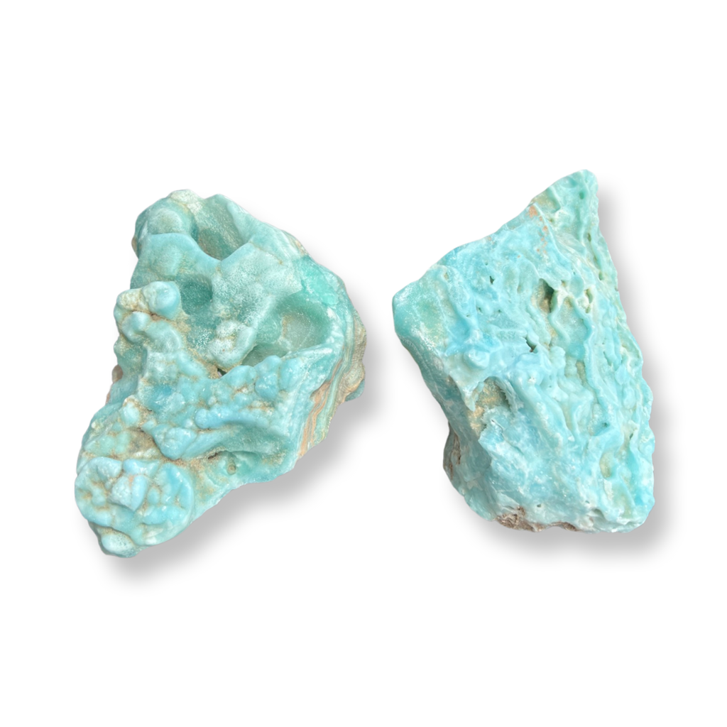 Blue Aragonite activates the Third Eye, Throat and Heart Chakras to offer patience, intuition, and insight to our emotions and our closest relationships. Blue Aragonite helps increase our confidence and self-worth. It lessens the pain of anger and unneeded stress.