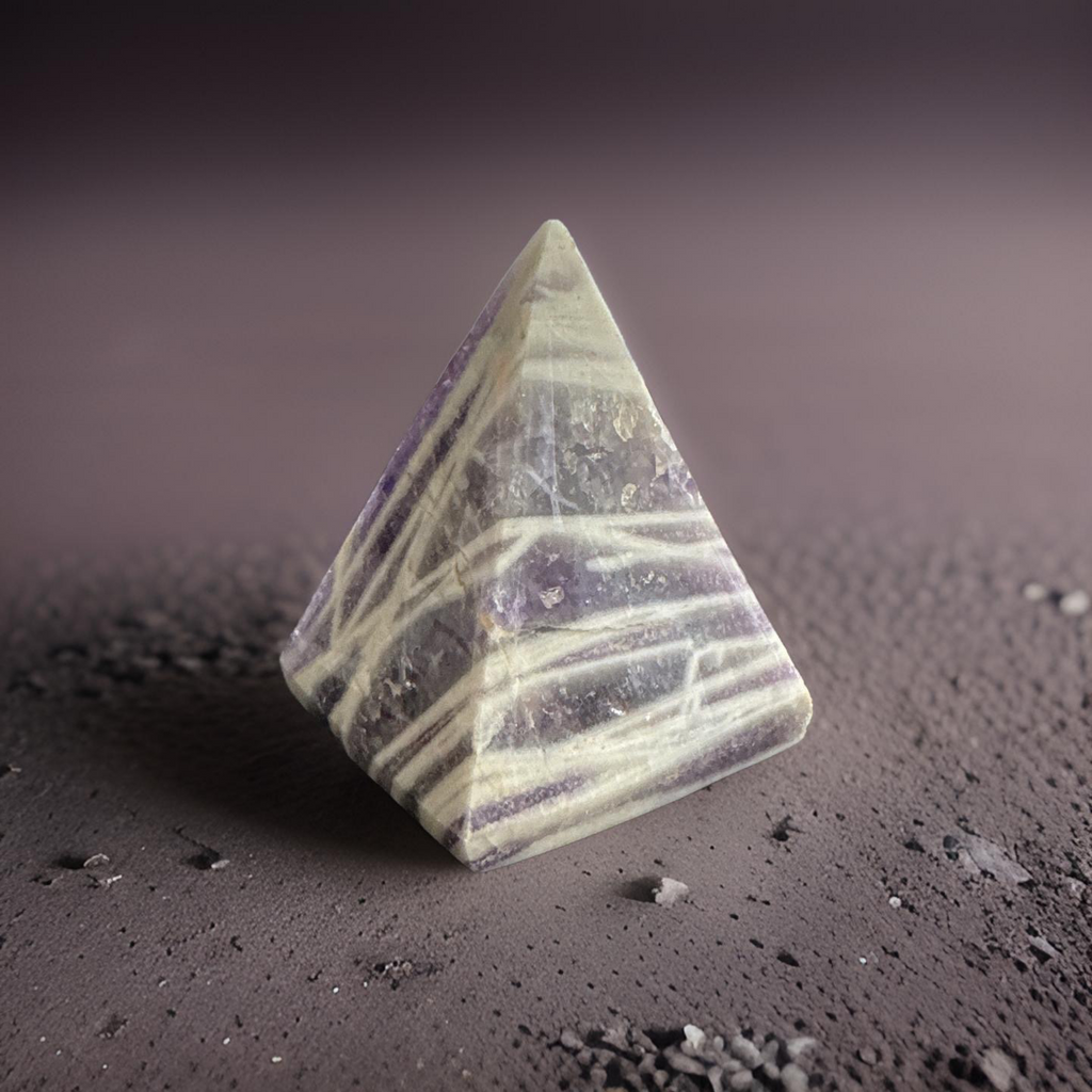 Chevron Amethyst's healing properties draw upon the stone's strong attunement to the Third Eye and Crown chakras. Its energies soothe the mind, promoting spiritual awareness and psychic development. It is also a stone of protection, cleansing your aura and transmuting negative energy into positive.