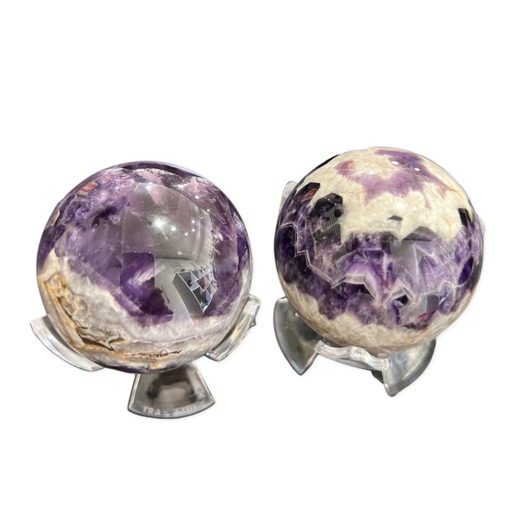 Chevron Amethyst is one of the finest Third Eye stones for stimulating vision within the self as well as the physical world, filtering the life force from the cosmos via the Crown Chakra in its white layers, and opening up spiritual and psychic channels through the purple.