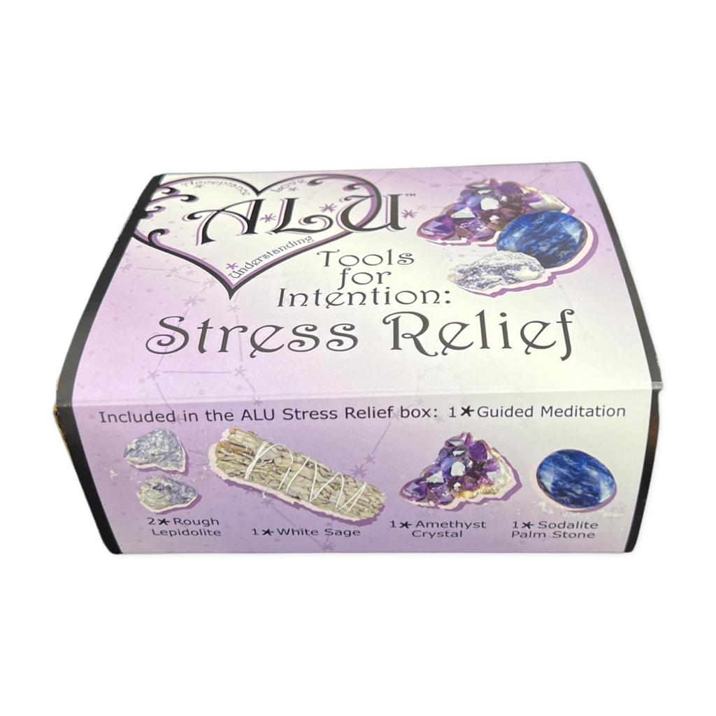 Stress Relief - Box include (2 rough lepidolite + 1 white sage + 1 Amethyst crystal + 1 sodalite palm stone )