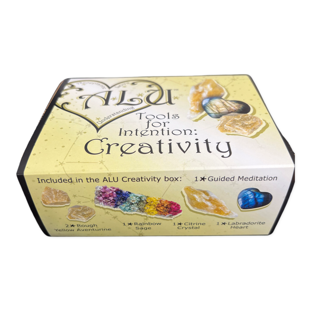 Creativity - Box include ( 2 rough yellow aventurine +1 rainbow sage +1 citrine crystal +1 labradorite heart )