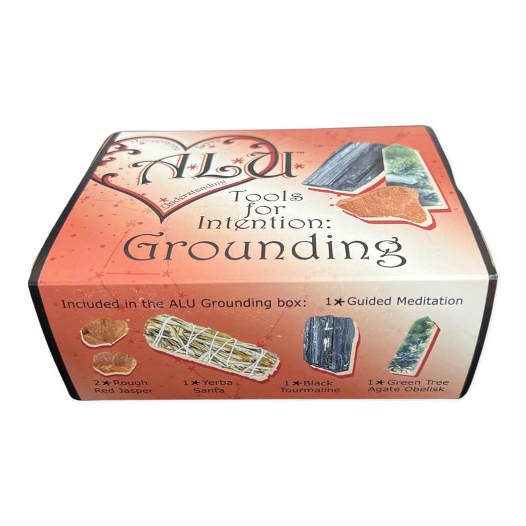 Grounding- Box include ( 2 rough red Jasper +1 Yerba santa + 1 black Tourmaline +1 green tree agate obelisk )