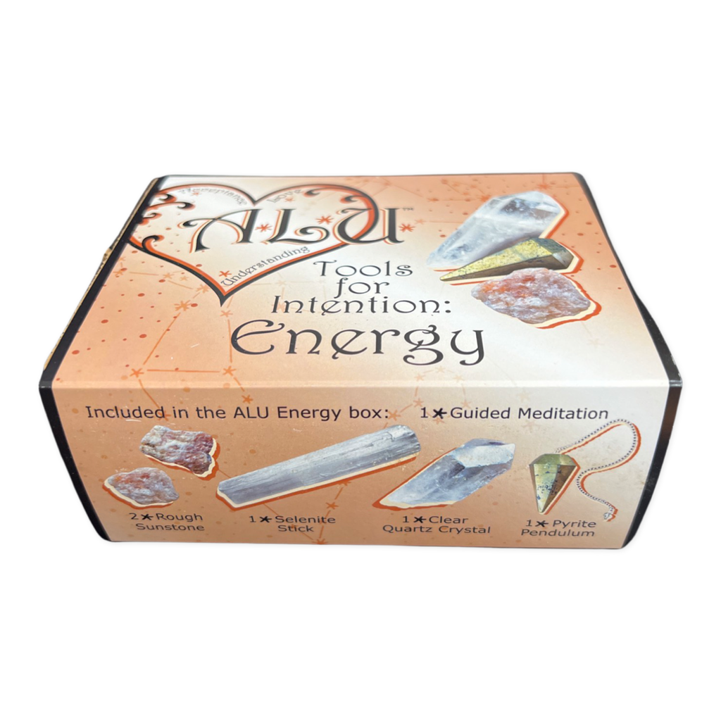 Energy- Box include ( 2 rough sunstone + 1 selenite stick + 1 clear Quartz crystal +1 pyrite pendulum)