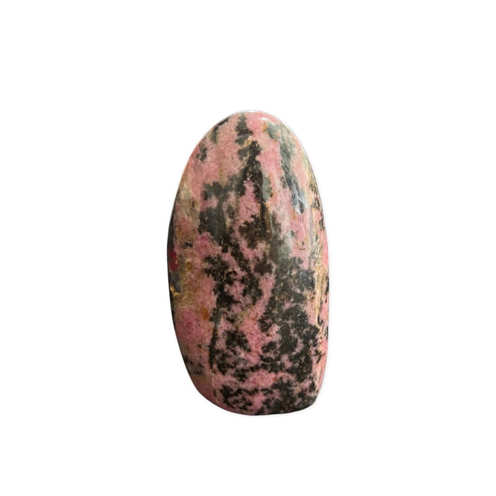 Rhodonite is a stone of compassion, an emotional balancer that clears away emotional wounds and scars from the past, and that nurtures love. It stimulates, clears and activates the heart. Rhodonite grounds energy, balances yin-yang, and aids in achieving one's highest potential. It heals emotional shock and panic.