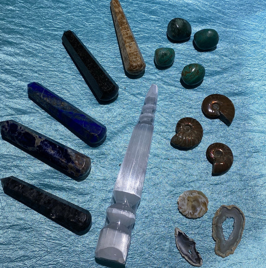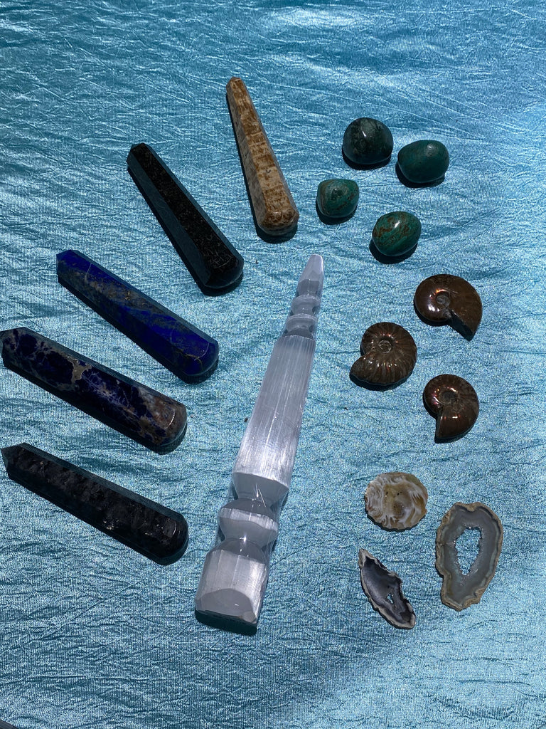 Selenite is a calming stone that instils deep peace and is excellent for meditation or spiritual work. It assists judgement and insight. It clears confusion and aids in seeing the deeper picture. Selenite aligns the spinal column and promotes flexibility.