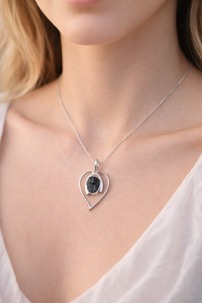 $62.00Black tourmaline, also known as schorl, is widely revered in crystal healing for its potent protective and grounding properties. It acts as an "energetic bodyguard" by absorbing and transmuting negative energies from its surroundings and the aura of its user.Add to WishlistQuick View {"id":9194860773603,"title":"Rough Black Tourmaline Pendant Sterling Silver","handle":"rough-black-tourmaline-pendant-sterling-silver","description":"\u003cdiv data-subtree=\"aimfl\" jsaction=\"\" jscontroller=\"v48bt\" data-sfc-root=\"c\" jsuid=\"M35P9d_7\" data-sfc-cb=\"\"\u003eBlack tourmaline, also known as schorl, is widely revered in crystal healing for its\u003c\/div\u003e\n\u003cp\u003e\u003cmark class=\"HxTRcb\" jsaction=\"\" jscontroller=\"DfH0l\" data-sfc-root=\"c\" jsuid=\"M35P9d_8\" data-sfc-cb=\"\"\u003epotent protective and grounding properties\u003c\/mark\u003e\u003cspan\u003e. It acts as an \"energetic bodyguard\" by absorbing and transmuting negative energies from its surroundings and the aura of its user.\u003c\/span\u003e\u003c\/p\u003e","published_at":"2026-03-21T12:02:09-04:00","created_at":"2026-03-21T11:59:11-04:00","vendor":"Touch of Silver Jewelry","type":"Pendant","tags":[],"price":6200,"price_min":6200,"price_max":6200,"available":true,"price_varies":false,"compare_at_price":null,"compare_at_price_min":0,"compare_at_price_max":0,"compare_at_price_varies":false,"variants":[{"id":48527231549667,"title":"Default Title","option1":"Default Title","option2":null,"option3":null,"sku":"PA-25815\/01","requires_shipping":true,"taxable":true,"featured_image":null,"available":true,"name":"Rough Black Tourmaline Pendant Sterling Silver","public_title":null,"options":["Default Title"],"price":6200,"weight":0,"compare_at_price":null,"inventory_management":"shopify","barcode":"40457-6","requires_selling_plan":false,"selling_plan_allocations":[]}],"images":["\/\/www.touchofsilverjewelry.com\/cdn\/shop\/files\/A4C30C81-9A11-4E1D-B0B9-FD6C9BA48777.png?v=1774108960","\/\/www.touchofsilverjewelry.com\/cdn\/shop\/files\/8128FB41-BAC0-4B74-BF21-7A6FF26DD7B8.png?v=1774108961"],"featured_image":"\/\/www.touchofsilverjewelry.com\/cdn\/shop\/files\/A4C30C81-9A11-4E1D-B0B9-FD6C9BA48777.png?v=1774108960","options":["Title"],"media":[{"alt":null,"id":38475155046627,"position":1,"preview_image":{"aspect_ratio":0.667,"height":1536,"width":1024,"src":"\/\/www.touchofsilverjewelry.com\/cdn\/shop\/files\/A4C30C81-9A11-4E1D-B0B9-FD6C9BA48777.png?v=1774108960"},"aspect_ratio":0.667,"height":1536,"media_type":"image","src":"\/\/www.touchofsilverjewelry.com\/cdn\/shop\/files\/A4C30C81-9A11-4E1D-B0B9-FD6C9BA48777.png?v=1774108960","width":1024},{"alt":null,"id":38475155079395,"position":2,"preview_image":{"aspect_ratio":0.667,"height":1536,"width":1024,"src":"\/\/www.touchofsilverjewelry.com\/cdn\/shop\/files\/8128FB41-BAC0-4B74-BF21-7A6FF26DD7B8.png?v=1774108961"},"aspect_ratio":0.667,"height":1536,"media_type":"image","src":"\/\/www.touchofsilverjewelry.com\/cdn\/shop\/files\/8128FB41-BAC0-4B74-BF21-7A6FF26DD7B8.png?v=1774108961","width":1024}],"requires_selling_plan":false,"selling_plan_groups":[],"content":"\u003cdiv data-subtree=\"aimfl\" jsaction=\"\" jscontroller=\"v48bt\" data-sfc-root=\"c\" jsuid=\"M35P9d_7\" data-sfc-cb=\"\"\u003eBlack tourmaline, also known as schorl, is widely revered in crystal healing for its\u003c\/div\u003e\n\u003cp\u003e\u003cmark class=\"HxTRcb\" jsaction=\"\" jscontroller=\"DfH0l\" data-sfc-root=\"c\" jsuid=\"M35P9d_8\" data-sfc-cb=\"\"\u003epotent protective and grounding properties\u003c\/mark\u003e\u003cspan\u003e. It acts as an \"energetic bodyguard\" by absorbing and transmuting negative energies from its surroundings and the aura of its user.\u003c\/span\u003e\u003c\/p\u003e"}