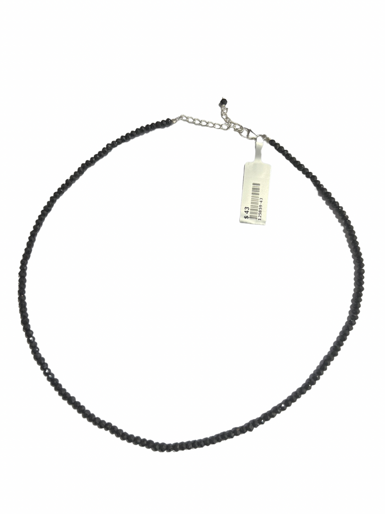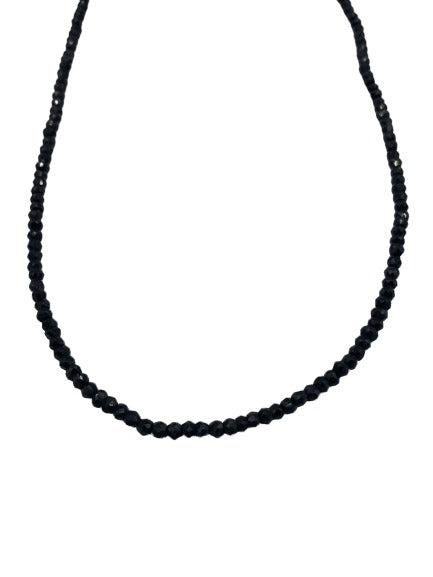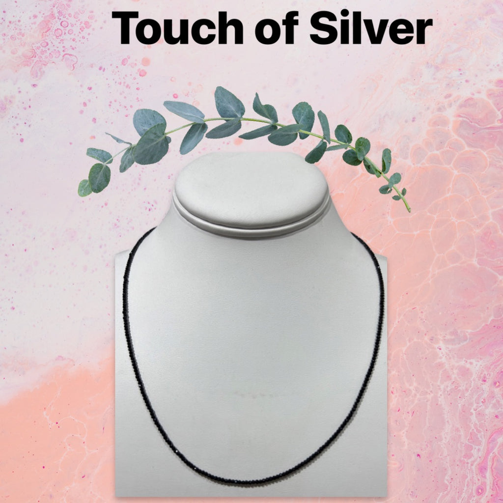 Handmade 925 Sterling Silver Round Faceted Black Spinal Beaded Necklace