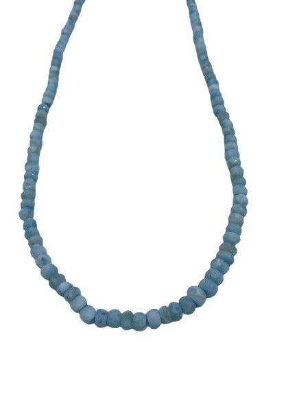 Handmade 925 Sterling Silver Round Faceted Larimar Beaded Necklace